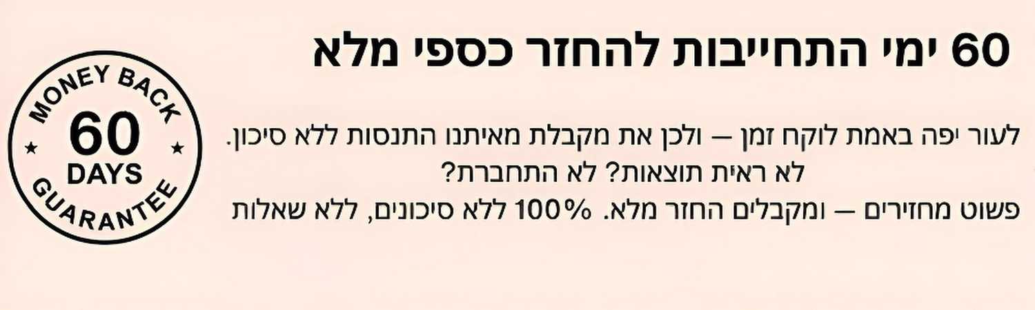 ניתן להחזיר את המוצר בתוך 60 יום מרגע קבלתו — ולקבל החזר כספי מלא