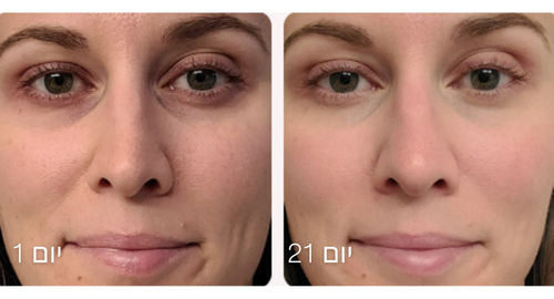 • “התחלתי לראות תוצאות כבר אחרי בערך 5 ימים! עור לח וזוהר, האזור מתחת לעיניים מואר יותר, עצמות לחיים מודגשות... וזה רק חלק מהשינויים.”
